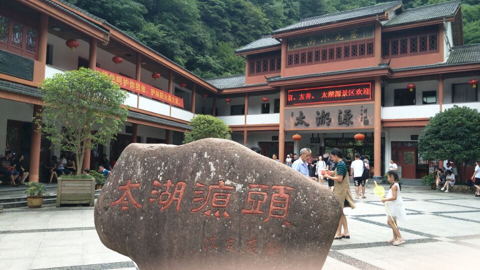 行程的第二天我們去了太湖源位于東天目山自然生態區,太湖水系主河流東苕溪的源頭,人稱“小九寨溝”。景區植被覆蓋率為95%,植物種類豐富,野生景觀植物遍布山野,四季景色迷人,又是一個野生動物的天堂,生活著黑麂、獼猴等多種國家重點保護動物。景區內峭壁陡崖,綠樹成蔭,山花爛漫,清溪長歌,懸瀑飛瀉,原始自然。因養育千百萬江浙滬人民的浩淼太湖的源頭坐落于此,景區故名太湖源。是一個旅游休閑的極佳去處。景區海拔最高800多米,不算很高路途不是很陡,平緩適合老人小孩!景區里還有很多猴子,可以喂食!,溪水里面也有好多小魚,可以帶網兜下水捕小魚,太湖源頭一直在最頂上,途中還有一座廟宇。上山的路比較平緩,所以一路上很輕松。路邊每隔一段會有一家小攤,賣一些吃的和登山用品和草藥,商家介紹他們都是當地的山民。景色還不錯,是個休閑放松的好地方?諝夂懿诲e!水超級清澈,沿途都是小瀑布小溪流,適合夏天避暑納涼,現在夏季很挺不錯,不熱人少!
